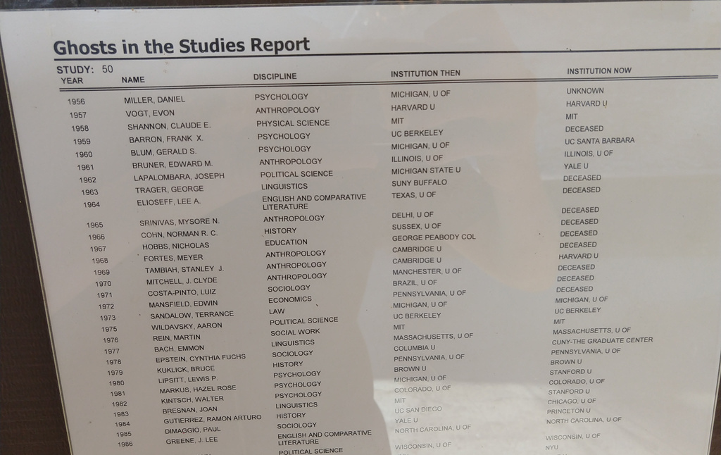 The top part of the list of ghosts in Study #50 at CASBS.